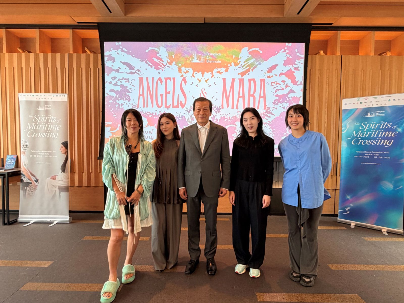 ภายในงาน ศาสตราจารย์ ดร.อภินันท์ โปษยานนท์ ประธานอำนวยการและผู้อำนวยการศิลป์ บางกอก อาร์ต เบียนนาเล่ กล่าวต้อนรับ พร้อมนำเสนอแนวคิดและวิสัยทัศน์ของนิทรรศการ “The Spirits of Maritime Crossing : วิญญาณข้ามมหาสมุทร 2026” หลังจากประสบความสำเร็จเป็นอย่างยิ่งจากการจัดแสดงครั้งแรกเมื่อช่วงเดือนเมษายน ปี 2567 ที่ผ่านมา โดยมีกำหนดจัดแสดงระหว่างวันที่ 9 พฤษภาคม – 2 สิงหาคม 2569 ณ Palazzo Rocca Contarini Corfù นครเวนิส สาธารณรัฐอิตาลี ซึ่งเป็นส่วนหนึ่ง (Collateral Event) ในมหกรรมศิลปะนานาชาติ เวนิส เบียนนาเล่ ครั้งที่ 61 พร้อมเชื่อมโยงสู่ เทศกาลศิลปะร่วมสมัยนานาชาติ “บางกอก อาร์ต เบียนนาเล่ 2026” ที่จัดขึ้นอย่างต่อเนื่องเป็นครั้งที่ 5 กับความยิ่งใหญ่ระดับโลก กำหนดจัดขึ้นในทุกๆ 2 ปี ภายใต้แนวคิดใหม่ “นางฟ้า ผจญมาร” (Angles and Mara) โดยเน้นย้ำถึงบทบาทของศิลปะร่วมสมัยในการเชื่อมโยงบทสนทนาระหว่างวัฒนธรรมในระดับนานาชาติ และขอขอบคุณ บริษัท ไทยเบฟเวอเรจ จำกัด (มหาชน) เป็นอย่างยิ่ง ที่ให้การสนับสนุนการดำเนินงานอย่างต่อเนื่อง และมีส่วนสำคัญในการผลักดันศิลปะและวัฒนธรรมไทยสู่เวทีโลก