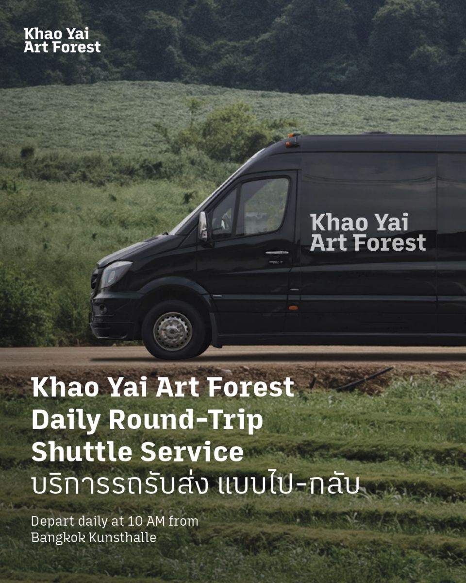 เปิดให้เข้าชมทุกวันพฤหัสบดี-วันศุกร์ 12.30-18.00 น. / วันเสาร์-วันอาทิตย์ 10.00-18.00 น. (ปิดทุกวันจันทร์-วันพุธ)พิเศษ! พร้อมให้บริการรถรับ-ส่งแบบ One Day Trip จากกรุงเทพฯ (ณ Bangkok Kunsthalle) ทุกวันพฤหัสบดี–วันอาทิตย์ ราคา 500 บาท/ ท่าน (ไป-กลับ) ออกเดินทาง 10:00 น. และกลับ 17:00 น. (จองล่วงหน้าเนื่องจากที่นั่งมีจำกัด) ผ่านทาง Ticket Tailor หรือ Inbox Facebook: Khao Yai Art Forest