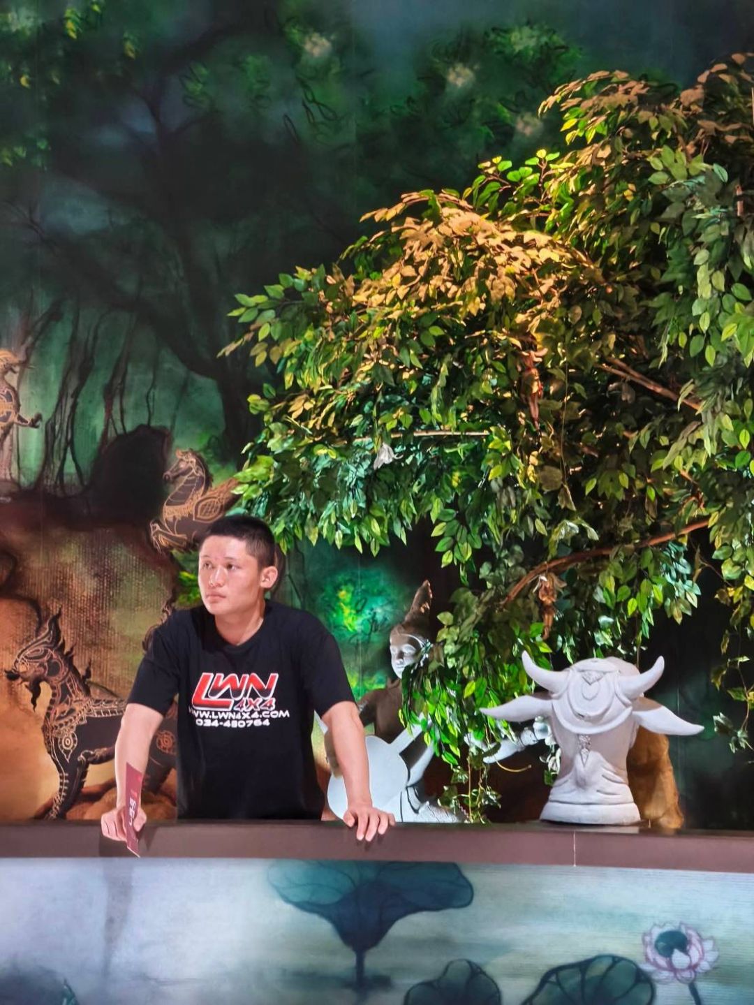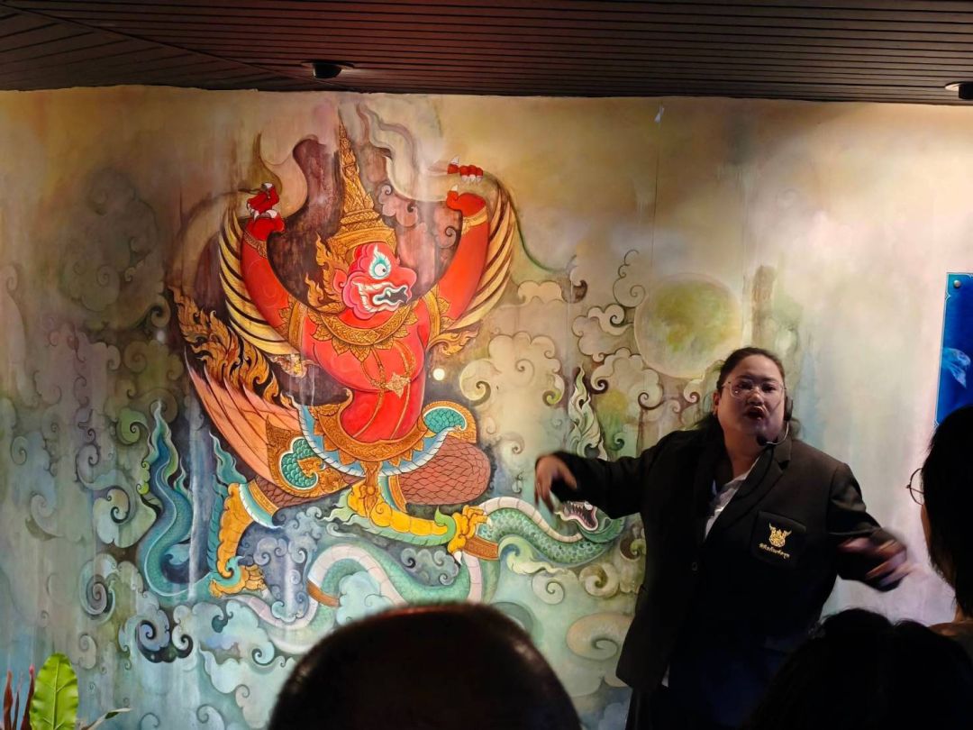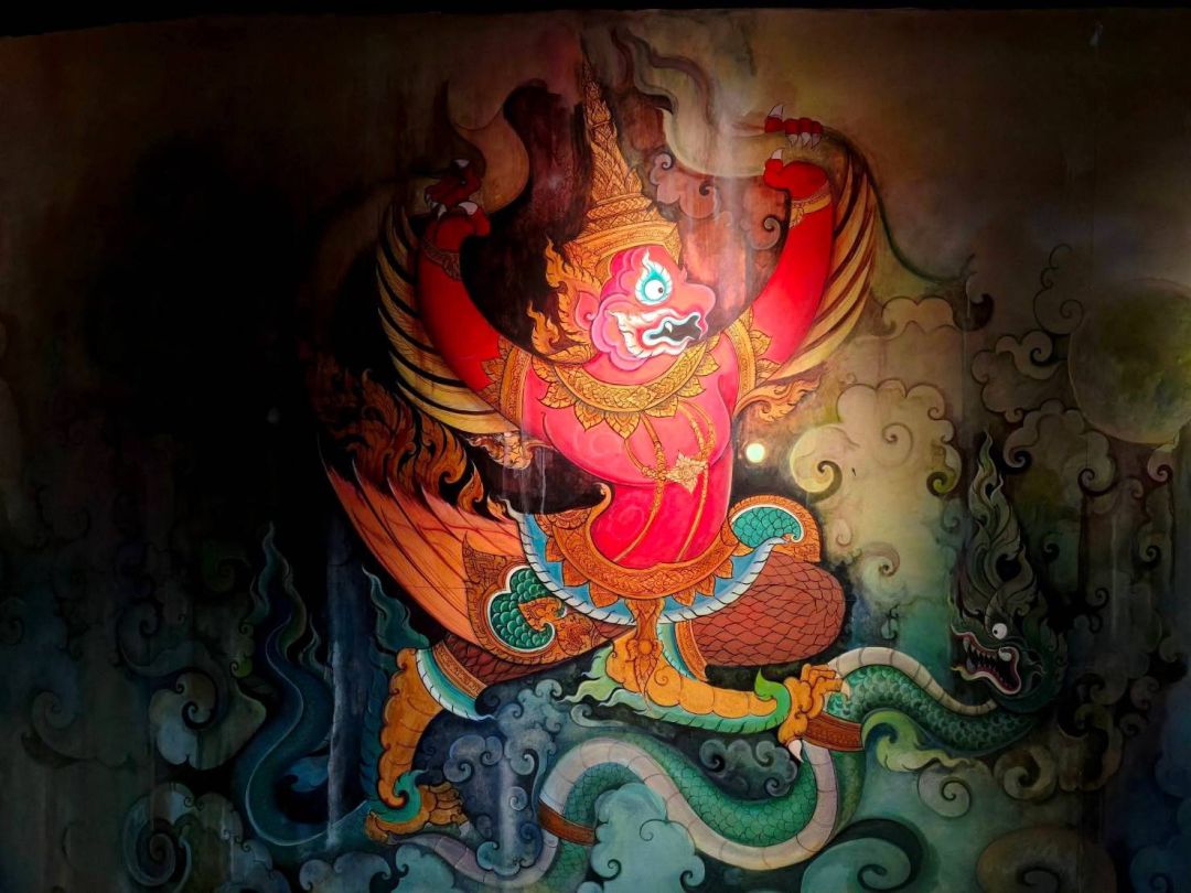 โถงต้อนรับ เริ่มต้นผจญภัยกับวิจิตรหิมพานต์ที่สะท้อนคติความเชื่อของคนไทยตามหลักไตรภูมิพระร่วงเป็นภาพจิตรกรรมอันทรงคุณค่า บอกเล่าถึงที่สถานที่อยู่ของครุฑ