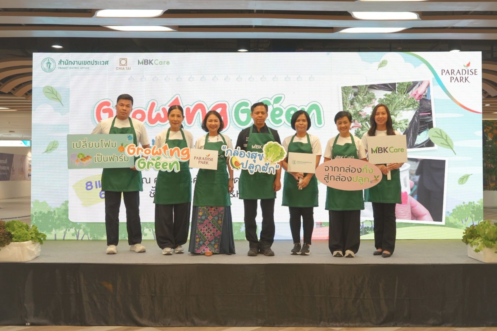 จรูญรัตน์ สาลี กรรมการผู้จัดการ บริษัท พาราไดซ์ พาร์ค จำกัด กล่าวว่า “พาราไดซ์ พาร์ค ศูนย์การค้าในเครือเอ็ม บี เค มุ่งดำเนินธุรกิจควบคู่กับการดูแลสิ่งแวดล้อม ภายใต้แนวคิด MBK Care สำหรับกิจกรรม “กล่องสุข ปลูกผัก” (Growing Green) จัดร่วมกับ สำนักงานเขตประเวศ ไม่เพียงช่วยลดปริมาณขยะ แต่ยังเพิ่มพื้นที่สีเขียวและสร้างการมีส่วนร่วมของชุมชนอย่างเป็นรูปธรรม เราตั้งเป้ากิจกรรมนี้เป็นต้นแบบด้านการบริหารจัดการทรัพยากรในศูนย์การค้า และต่อยอดสู่การพัฒนาอย่างยั่งยืนในระยะยาว
