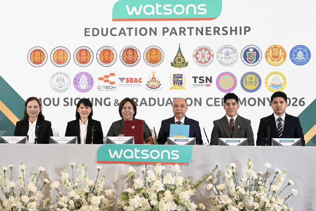 วัตสัน ประเทศไทย ผู้นำร้านเพื่อสุขภาพและความงามอันดับหนึ่ง เดินหน้าพัฒนาบุคลากรคนรุ่นใหม่ ผ่านความร่วมมือกับภาครัฐและสถาบันการศึกษา จัดกิจกรรม “Watsons Education Partnership MOU Signing & Graduation Ceremony 2026” พิธีลงนามบันทึกข้อตกลงความร่วมมือ (MOU) ร่วมกับสำนักงานคณะกรรมการการอาชีวศึกษา (สอศ.) มหาวิทยาลัยสุโขทัยธรรมาธิราช และเครือข่ายสถาบันการศึกษาพันธมิตร 20 แห่ง เพื่อยกระดับสมรรถนะวิชาชีพและสร้างเส้นทางอาชีพที่มั่นคงให้กับนักศึกษาในระบบทวิภาคีสู่ตำแหน่งบริหารระดับสูงในอนาคต โดยได้รับเกียรติจาก จิระวัฒน์ แต่งเจนกิจ ผู้อำนวยการฝ่ายทรัพยากรบุคคล วัตสัน ประเทศไทย ร่วมด้วยตัวแทน สอศ. ตัวแทนเครือข่ายสถาบันการศึกษา พร้อมผู้ทรงคุณวุฒิ และนักศึกษาทวิภาคีที่สำเร็จหลักสูตรเข้าร่วมพิธี ณ โรงแรมเรดิสัน บลู พลาซ่า กรุงเทพฯ เมื่อวันก่อน