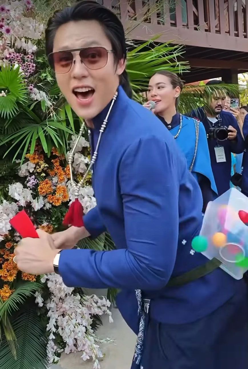 โดยคู่รัก “หมาก-คิม” รับหน้าที่เป็นเพื่อนเจ้าบ่าวเจ้าสาวมาในลุคชุดไทยประยุกต์ที่เน้นโทนสีน้ำเงินเข้มและฟ้าคราม เข้ากับบรรยากาศรื่นเริงแบบไทยๆ ได้อย่างลงตัวหมาก ปริญ มาในชุดเสื้อราชปะแตนประยุกต์แขนยาวสีน้ำเงินเข้ม คาดผ้าพันเอวลายไทย และสวมแว่นกันแดดทรงสปอร์ต เพิ่มลุคเท่ๆ ขรึมๆ แต่ยังคงความภูมิฐาน ด้าน ‘คิมเบอร์ลี่’ สวยสง่าในชุดไทยห่มสไบสีฟ้าสดใส ตัดกับผ้าถุงลายไทยทอละเอียดสีน้ำเงิน คอมพลีทลุคด้วยกระเป๋าแบรนด์เนมคู่ใจและเครื่องประดับเงินที่ดูทันสมัยแต่เข้ากันกับชุดไทยได้อย่างไร้ที่ติ งานนี้ทำเอาชาวเน็ตต่างเข้ามาคอมเมนต์ชื่นชมในความเหมาะสมและความหวานที่ไม่ยอมแพ้คู่บ่าวสาวเลยทีเดียว พร้อมทั้งตั้งตารอดูภาพบรรยากาศน่ารักๆ ของชาวแก๊งล่มที่มารวมตัวกันในวันสำคัญแบบนี้
