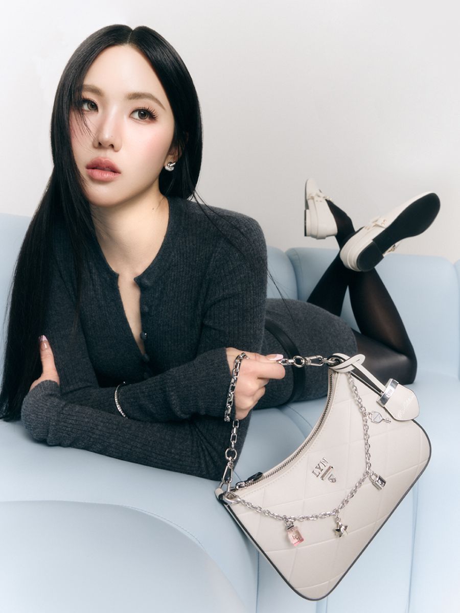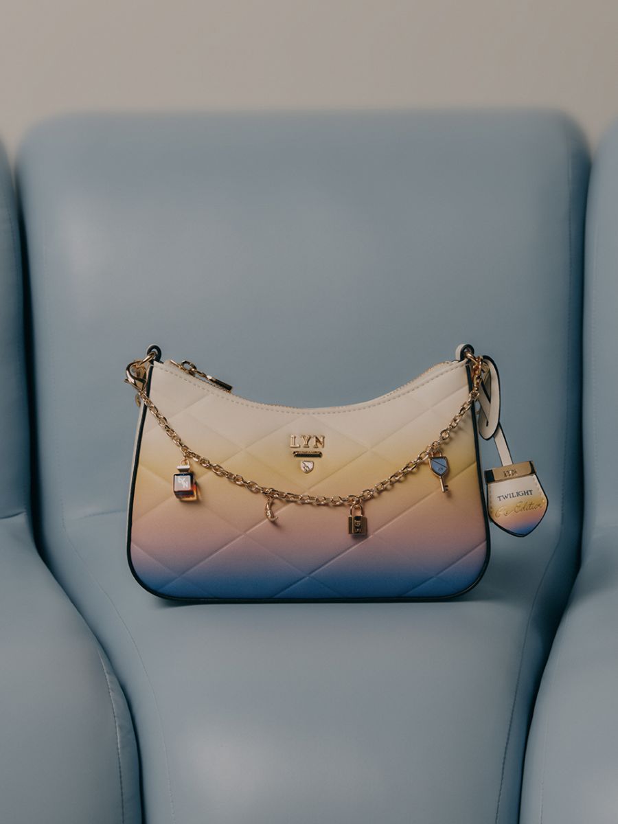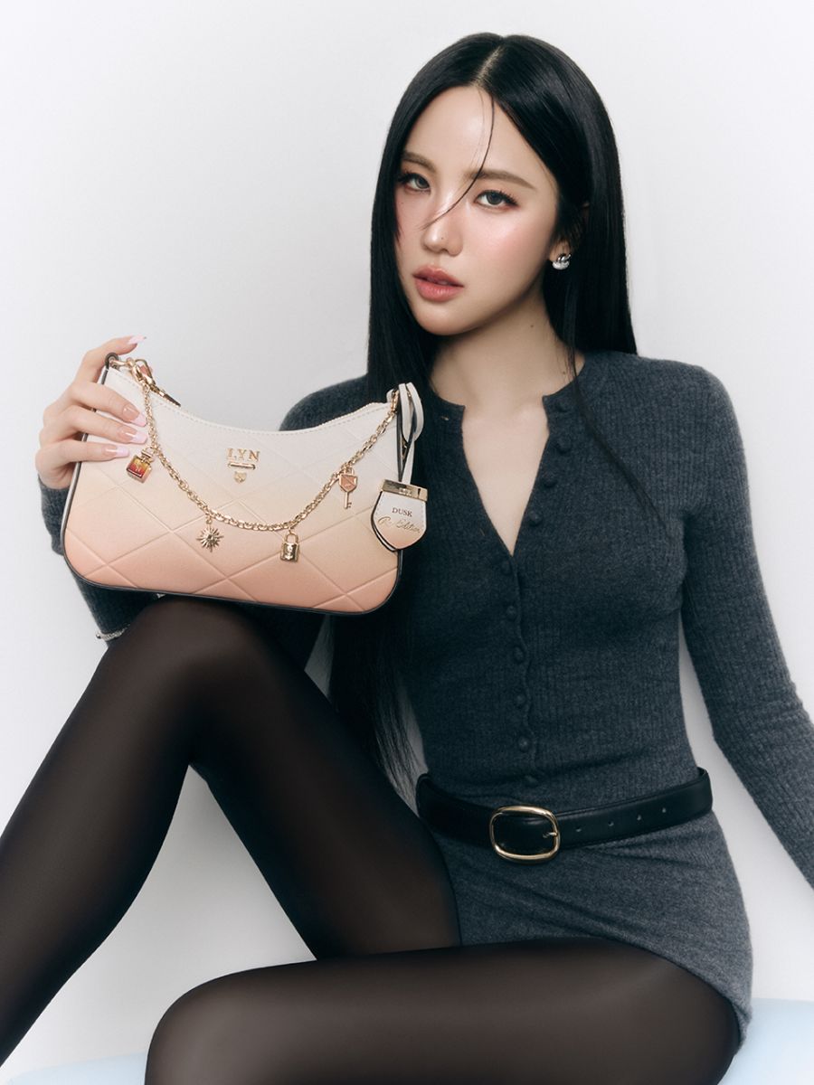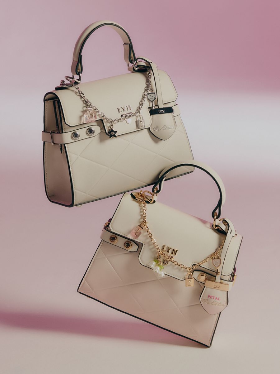 กระเป๋ารุ่นไฮไลต์ Re-Edition Perfume Bag ที่ถูกนำมาตีความใหม่ใน 3 รูปแบบ โดยดึงแรงบันดาลใจจากน้ำหอมซิกเนเจอร์ของแบรนด์อย่าง PETAL, DUSK และ TWILIGHT ถ่ายทอดออกมาในรูปแบบโซ่ชาร์มถอดได้ ดีไซน์ชาร์มมีเอกลักษณ์แตกต่างกันตามคาแรคเตอร์ของกลิ่น ไม่ว่าจะเป็นดอกไม้ ขวดน้ำหอม หรือการไล่เฉดสีอันโดดเด่น เช่น ขาว-ชมพู ขาว-ฟ้า-ส้ม ขาว-ดำ และขาว-ส้ม เสริมด้วยรองเท้าดีไซน์พิเศษที่ออกแบบส้นรองเท้าในรูปทรงขวดน้ำหอม LYN Love เติมเต็มลุคให้สมบูรณ์แบบและสะท้อนความเป็นสตาร์อย่างแท้จริง
