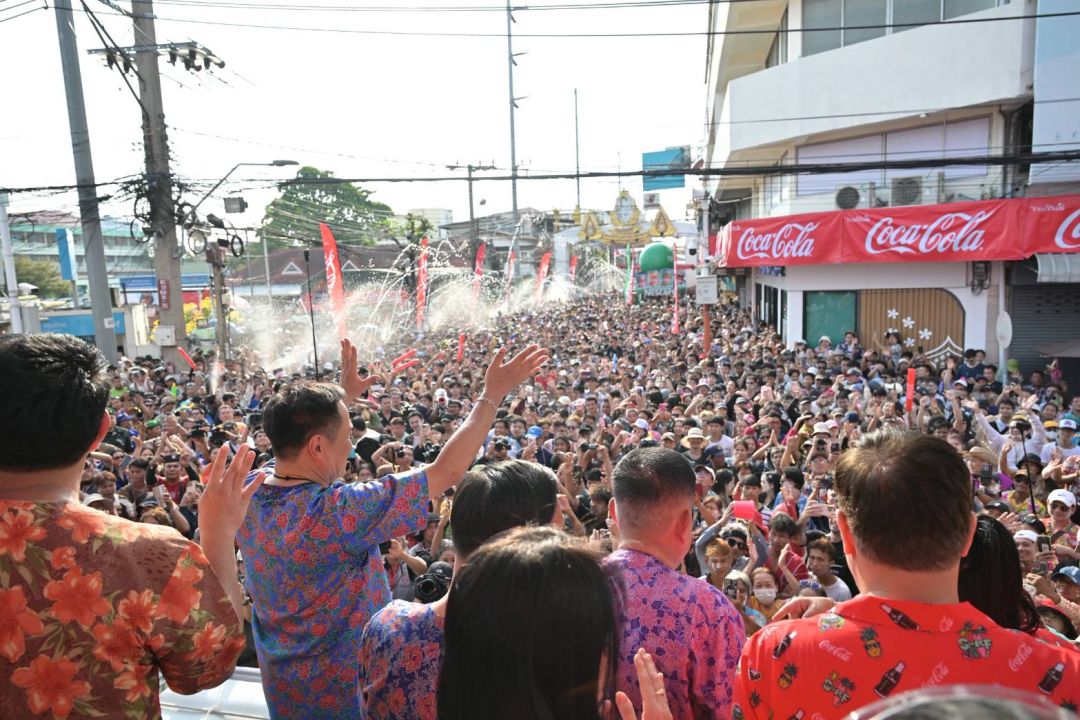 นายกฯ กล่าวเปิดงานว่า รู้สึกยินดีที่ได้มาร่วมงานครั้งนี้ และได้มาพบกันด้วยรอยยิ้มทุกคน ถ้าตนไปยืนข้างบนเวทีนอกจากร้อนแล้ว ก็ต้องหันหน้าออกไปข้างนอก ก็ไม่รู้จะไปคุยกับใคร เพราะว่าคนที่มาร่วมงานส่วนใหญ่อยู่ในปะรำพิธีแห่งนี้ ตนมีความยินดีเป็นอย่างยิ่งที่ได้มาร่วมงานในวันนี้ ต้องกราบเรียนว่า ครั้งนี้ไม่ใช่ครั้งแรกที่ได้มีโอกาสมาเปิดงาน เพราะอดีต สส. พรรคภูมิใจไทยเคยชวนตนมา แต่ไม่ได้มาหลายปีแล้ว วันนี้ตนมีวาสนาอีกครั้งที่ได้มาที่นี่ มาพบกับพวกเรา วันนี้แทบจะปิดเมืองพระประแดงเลยทีเดียว ตั้งแต่ลงทางด่วนถนนสุขสวัสดิ์มาก็เห็นประชาชนมีความสุข เล่นน้ำ ประแป้งด้วยความสนุกสนานรื่นเริง
