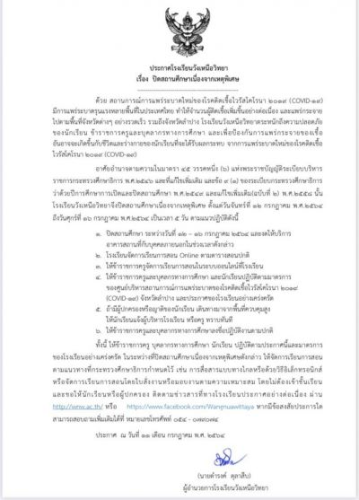 เชื่อว่าไม่สามารถเปิดสอนในโรงเรียนหรือ ON-SITE ได้ เพราะยังมีการแพร่ระบาดของโควิด-19 อย่างหนัก จากนั้นจะประเมินสถานการณ์ เพื่อดูว่าจะสามารถเปิดเรียนภาคเรียนที่ 2 ได้หรือไม่