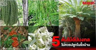 หลายคนอาจจะเคยสงสัยว่าการห้ามปลูกต้นไม้ที่มีชื่อที่ฟังแล้วจะไม่เป็นมงคลเอาไว้ในบ้าน เป็นเพียงแค่กุศโลบายของคนโบราณหรือเปล่า หรือว่าแต่ละต้นจะมีความอัปมงคลได้อย่างไรทั้งที่ให้ความร่มรื่นเหมือนๆกัน แต่บางคนก็มีความเชื่อเลือกปลูกต้นไม้ที่มีความหมายดีๆเสริมความเป็นสิริมงคลให้กับชีวิต ส่วนใครที่ยังไม่ทราบว่าต้นไม้ที่ตนเองกำลังปลูกอยู่นั้นคือต้นไม้อัปมงคลหรือเปล่า ลองไปสำรวจรอบบ้านดู คมชัดลึกออนไลน์ขอพามาแนะนำ 5 ต้นไม้อัปมงมล ไม่ควรปลูกในรั้วบ้าน ดังนี้จ้า
