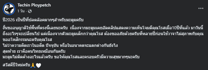 ล่าสุด ดีเจมะตูม เปิดใจขอโทษและขออโหสิกรรมต่อกัน โดยระบุว่า “ปี2026 เป็นปีที่ปลดล๊อคมากๆสำหรับมะตูมครับ