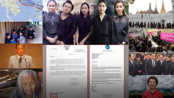 18.54 น. พสกนิกรชาวชุมพรนำผลไม้ ลองกอง มังคุด กล้วยเล็บมือนาง บรรทุกรถไปแจกให้ประชาชนที่ท้องสนามหลวงอย่างต่อเนื่อง ขณะที่ สจล.ปะทิว จัดพิธีแสดงความสำนึกในพระมหากรุณาธิคุณ นักศึกษาแปรอักษรเลข ๙ หัวใจเดียวกัน…