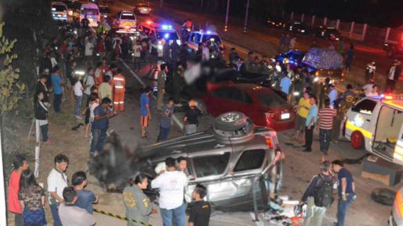 13.15 น.หนุ่มใหญ่วัย 54 ขับรถพาครอบครัวไปส่งญาติที่ประชาอุทิศ ก่อนขับกลับบ้านย่านพระราม 3 ระหว่างทาง มีกระบะวิ่งสวนมาด้วยความเร็ว ส่ายไปมา กินเลนพุ่งชนประสานงาอย่างจัง ส่งผลให้มีผู้เสียชีวิตคาที่ 1 ราย เจ็บระนาวอีก 8 คาดไม่ชินทางประกอบกับถนนดังกล่าว ค่อนข้างมืด …