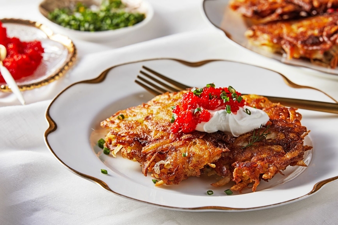 This Hanukkah, we will skip the decadent accoutrements, as they feel wrong against the backdrop of such a difficult year. We’ll forgo the caviar and the bubbles, and instead keep it simple, with plenty of sour cream and applesauce.