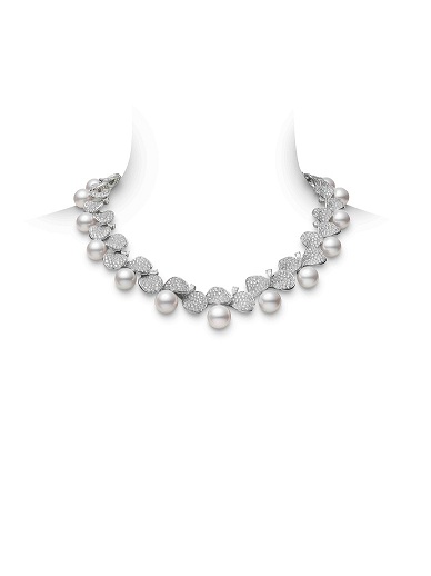 ) MIKIMOTO Pétales Collection Les Pétales Place Vendôme 18K White Gold Necklace with White South Sea Pearls and Diamonds