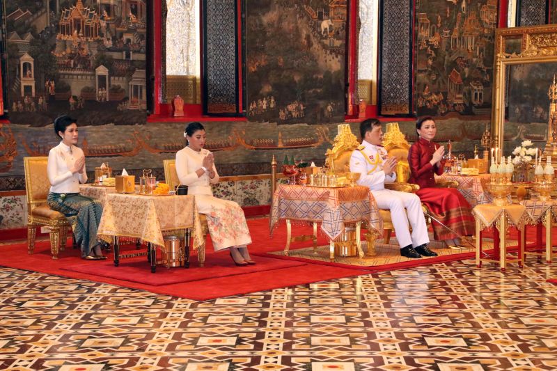 His Majesty King Maha Vajiralongkorn graciously joined Chao Khun Phra (Royal Noble Consort) Sineenat Bilaskalayani in making merit for her birthday at the Amporn Sathan Throne Hall in Dusit Palace on Tuesday morning.