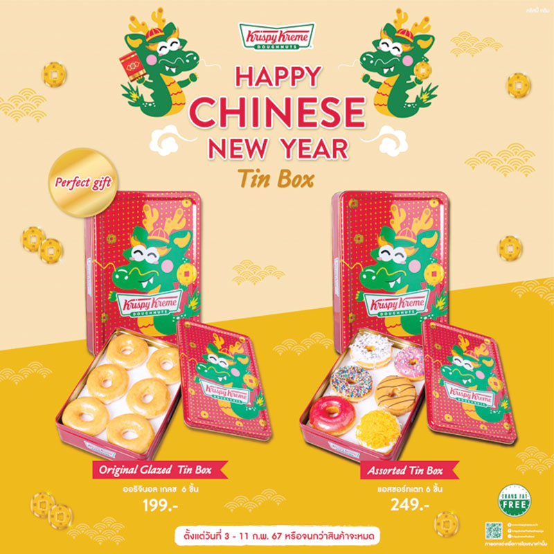 Krispy Kreme ชวนช็อป “Krispy Kreme Happy Chinese New Year Tin Box” ลวดลายมังกรบนทินบ็อกซ์พรีเมียมคอลเลคชั่นสัญลักษณ์แห่งปี ถึง 11 ก.พ.ที่ ร้านคริสปี้ ครีม