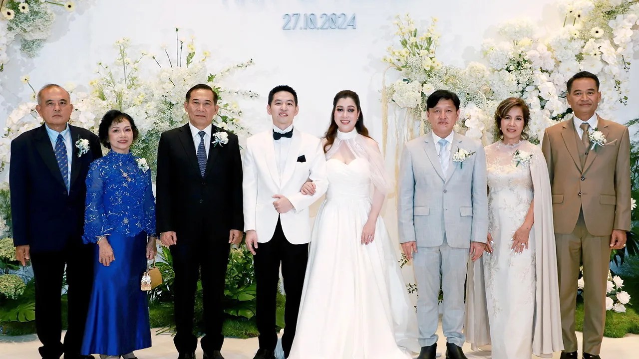 ฉลองสมรส สิริ ธรรมสุริยน ลูกสาว เสริม–อัมพร ธรรมสุริยน กับ จิรานุวัฒน์ จันทร์จร ลูกชาย สมนึก–สมพร จันทร์จร ที่ห้องแกรนด์ บอลรูม โรงแรมดิ เอมเมอรัลด์ 4 พ.ย. 11.30 น.
