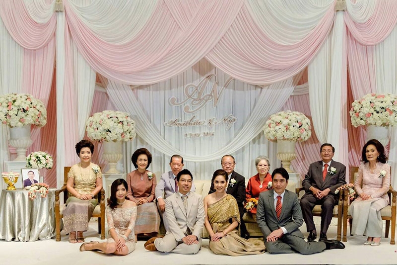 เครือญาติฝ่ายชาย นำโดย ดร.สุเมธ-คุณหญิงจินตนา ตันติเวชกุล,คุณแม่เจ้าบ่าว นพพร ชีวานันท์, อมรา วิชยาภัย บุนนาค, อัมพิกาพูนสวัสดิ์ ร่วมถ่ายภาพกับคู่บ่าว-สาว