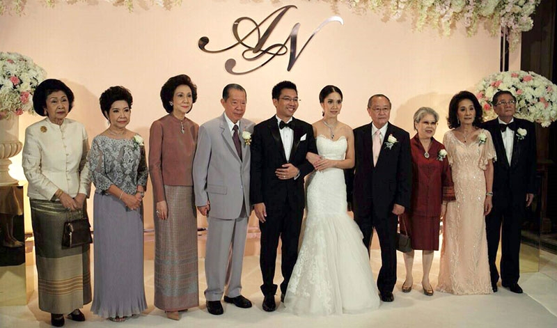 ประธานในพิธีฝ่ายชาย ศ.ดร.อุกฤษ-ท่านผู้หญิงมณฑินี มงคลนาวิน ประธานในพิธีฝ่ายหญิง ดร.สุเมธ-คุณหญิงจินตนาตันติเวชกุล ร่วมแสดงความยินดีกับบ่าว-สาว มี คุณพ่อ-คุณแม่ฝ่ายหญิง ไพศาล-อัจฉรา ลีนะวัต และคุณแม่ฝ่ายชาย นพพรชีวานันท์ ต้อนรับ