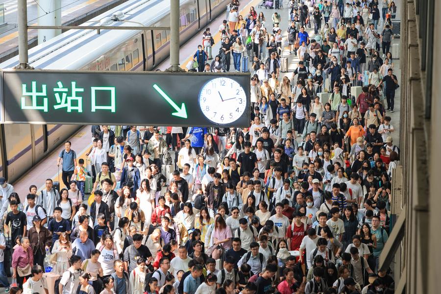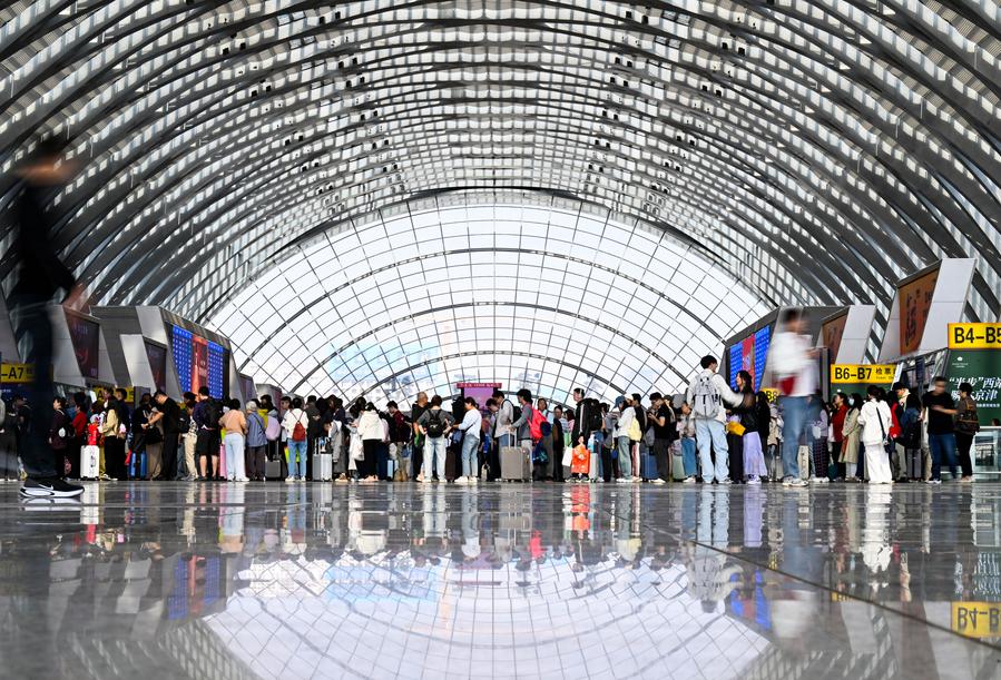 ประมวลภาพบรรยากาศประชาชนจำนวนมากออกเดินทางขากลับทั่วจีน ขณะช่วงหยุดยาววันชาติและเทศกาลไหว้พระจันทร์ ระยะ 8 วัน จะสิ้นสุดลงในวันพุธ (8 ต.ค.) ทำให้สถานีรถไฟ ถนนหนทาง และท่าเรือ รับรองการเดินทางของประชาชนเพิ่มขึ้นอย่างมาก