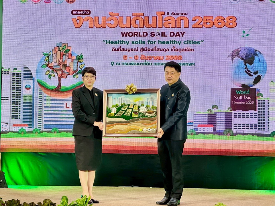 ด้าน ดร.สุมิตรา วัฒนา อธิบดีกรมพัฒนาที่ดิน กล่าวว่า กรมพัฒนาที่ดิน เป็นหน่วยงานหลักในการจัดงานวันดินโลก (World Soil Day) ประจำปี 2568 นี้ เพื่อเผยแพร่ความรู้และการแลกเปลี่ยนข้อมูลเกี่ยวกับการอนุรักษ์ทรัพยากรดิน เน้นย้ำถึงความสำคัญของดินสุขภาพดีซึ่งเป็นพื้นฐานการพัฒนาเมืองให้น่าอยู่ ที่มีการเติบโตอย่างสมดุล ทั้งด้านเศรษฐกิจ สังคม และสิ่งแวดล้อม ช่วยเพิ่มพื้นที่สีเขียว สร้างอาหารที่ปลอดภัยและยกระดับคุณภาพชีวิตของคนเมือง ภายในงานมีการถ่ายทอดความยิ่งใหญ่แห่งศาสตร์พระราชาด้านการจัดการดินอย่างยั่งยืนของพระบาทสมเด็จพระบรมชนกาธิเบศร มหาภูมิพลอดุลยเดชมหาราช บรมนาถบพิตร และสมเด็จพระนางเจ้าสิริกิติ์ พระบรมราชินีนาถ พระบรมราชชนนีพันปีหลวง ที่ทรงให้ความสำคัญต่อการจัดการดินและน้ำ ผ่านนิทรรศการเฉลิมพระเกียรติฯ แสดงพระอัจฉริยภาพด้านการพัฒนาดิน น้ำและชีวิต