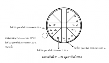 วันศุกร์ที่ 22 เมษายน 2559 ห้ามประกอบการมงคล ดาวจันทร์เกาะเทศาตรีฤกษ์ และโคจรเข้าเกาะเทวีฤกษ์ เวลา 08.49 น. วันนี้ ดาวจันทร์เพ็ญ (ปูรณมี) ในราศีตุลย์ ระยะ 08๐.26/ เวลา 12.24 น. เป็นรอบวันที่จะตัดสินใจอะไรอย่าใจร้อน ควรใช้หลัก “ช้าๆ ได้พร้าเล่มงาม”