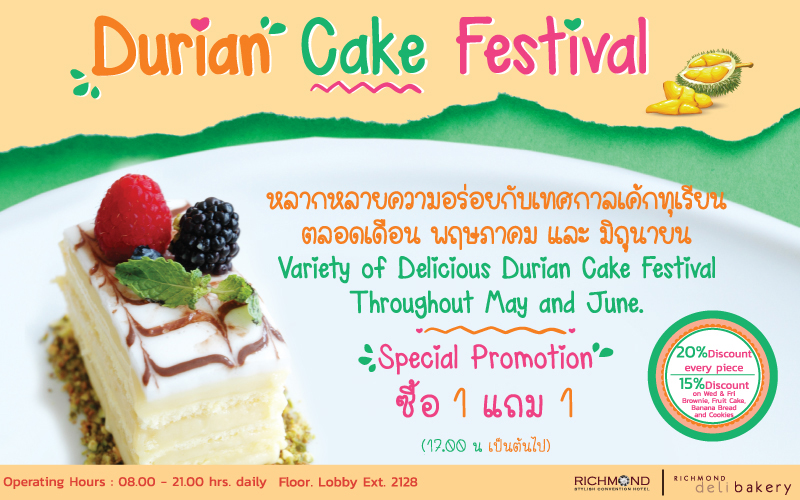 โรงแรมริชมอนด์ ให้คุณแม่ทานฟรี! เมื่อมา 4 ท่านขึ้นไป พร้อมร่วมกิจกรรมปลูกรักเพื่อแม่ ปลูกต้นไม้มงคลนำมามอบให้กับคุณแม่ทุกท่าน พร้อมรับกรอบรูปครอบครัวและลุ้นรับรางวัลบัตรกำนัลต่างๆมากมาย สำหรับบุฟเฟ่ต์อาหารนานาชาติ กับเมนูชั้นเยี่ยมจากเชฟมือหนึ่ง หรือบาร์บีคิวบุฟเฟ่ต์มื้อค่ำ กับมุมปรุงอาหารทะเลสดๆ อาทิ กุ้งย่าง, ขาแกะย่าง, ซีฟู้ดออนไอซ์ ฯลฯ ทั้งมื้อกลางวันและมื้อค่ำ ในราคาท่านละ 550 บาท++ เด็ก 6-12 ปี ลด 50% ที่ห้องอาหาร “แอท คาเฟ่”สำรองที่นั่งโทร.02-8318850