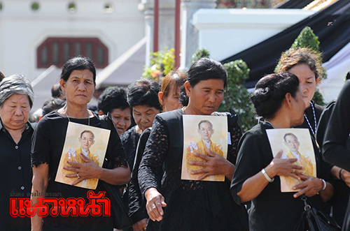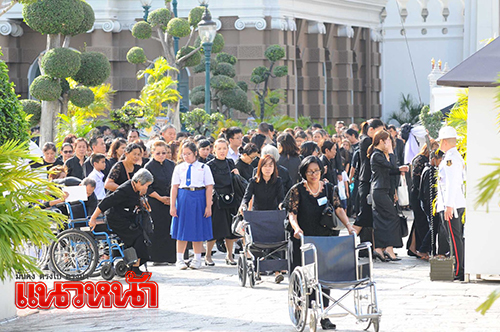 โดย นางนฤมณ สิทธุวารินทร์ อายุ 70 ปี ชาว ต.นาประดู่ อ.โคกโพธิ์ จ.ปัตตานี กล่าวว่า ได้เดินทางมาพร้อมสามี ลูกๆ และหลานอีก 2 คน เพื่อมากราบถวายบังคมพระบรมศพในหลวง ร.9 ซึ่งลูกสาวได้จองตั๋วเครื่องบินให้ช่วงกลางเดือนเมษายน แต่ตนอยากมาถวายความอาลัยก่อนจึงเดินทางมากันในวันนี้ เพราะรักในหลวง ร.9 มาก อยู่ได้ทุกวันนี้เพราะได้กำลังใจจากพระองค์ ที่ผ่านมาลำบากมากต้องเลี้ยงลูก 5 คน ได้น้อมนำคำสอนในเรื่องเศรษฐกิจพอเพียงของพระองค์มาปรับใช้ โดยการขยันหมั่นเพียร ประหยัด อดทน ดิ้นรนด้วยการทำไร่นาสวนผสม ปลูกผัก เลี้ยงปลา เลี้ยงเป็ด-ไก่ไว้กินเองและขายเพื่อหาเงินเลี้ยงลูกจนสำเร็จการศึกษาได้