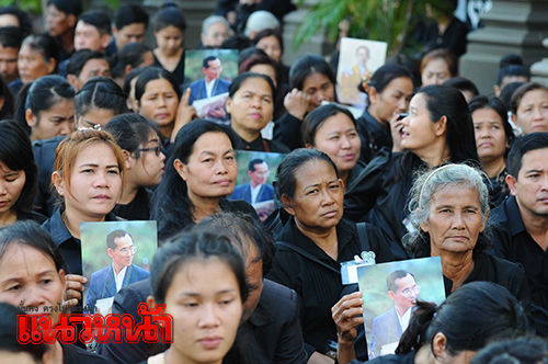 “วันนี้ตั้งใจเพื่อมาน้อมส่งพระองค์ท่านเสด็จสู่สวรรคาลัย ความรักที่มีต่อพระองค์ท่านอยู่ในใจไม่สามารถอธิบายออกมาเป็นคำพูดได้ รู้แต่ว่ารักพระองค์มาก ก่อนนี้ที่บ้านน้ำท่วมทุกปี แต่หลังจากที่มีคลองลัดโพธิ์ตามแนวพระราชดำริของพระองค์ น้ำก็ไม่ท่วมอีกเลย ถ้าไม่มีพระองค์ก็คงไม่ได้อยู่ดีกินดีขนาดนี้ และก่อนนี้ภาคอีสานก็แห้งแล้งมาก พอท่านเสด็จฯ ไปเยี่ยมราษฎรเห็นความลำบากของประชาชน ก็ทรงให้ทำฝนเทียม ทำให้มีน้ำปลูกข้าว เลี้ยงสัตว์ทำการเกษตรได้ และที่ผ่านมาก็ทำตามคำสอนของพระองค์โดยยึดหลักความพอเพียง พออยู่ พอกิน ใช้เท่าที่จำเป็น และให้เหลือเก็บ”