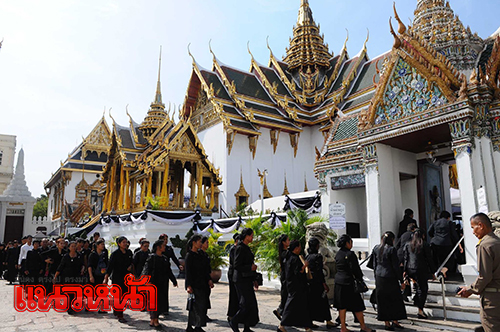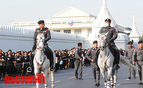 ส่วนบรรยากาศบริเวณรอบสนามหลวงและพระบรมมหาราชวัง พสกนิกรจากทั่วสารทิศเดินทางมาเข้าแถวรอกราบพระบรมศพพระบาทสมเด็จพระปรมินทรมหาภูมิพลอดุลยเดชเบื้องหน้าพระบรมโกศ ณ พระที่นั่งดุสิตมหาปราสาท ในพระบรมมหาราชวังจำนวนมากเช่นทุกวัน ซึ่งเจ้าหน้าที่เปิดให้เข้ากราบสักการะพระบรมศพตั้งแต่เวลา 04.45 น. ทั้งนี้ สำนักพระราชวังสรุปจำนวนประชาชนที่เข้ากราบพระบรมศพ เมื่อวันที่ 26 ธันวาคมถึงเวลา 23.56 น.มี 55,908 คน รวม 57 วันมี 2,349,038 คน และมีประชาชนถวายเงินร่วมบำเพ็ญพระราชกุศล 3,556,125 บาท รวม 57 วัน เป็นเงิน 186,958,187.25 บาท