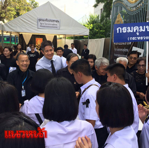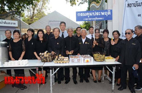 11 พ.ย.59 ที่จุดรองรับประชาชน บริเวณประตู 1 ฝั่งพระแม่ธรณี ศาลฎีกา (เดิม) พ.ต.อ.ณรัชต์ เศวตนันทน์ อธิบดีกรมคุมประพฤติ พร้อมด้วยเจ้าหน้าที่กรมคุมประพฤติ ได้ร่วมกันนำอาหารและเครื่องดื่มมาให้บริการแก่ประชาชนที่เดินทางมากราบสักการะพระบรมศพพระบาทสมเด็จพระปรมินทรมหาภูมิพลอดุลยเดช