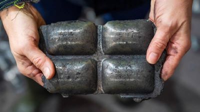 What comes out of the Hybrit plant is fossil-free sponge iron brickets, resembling a cluster of soap bars. They’re shipped to SSAB’s plant in Oxelosund, south of Stockholm. The first steel plates were made this summer and delivered to Volvo in August.