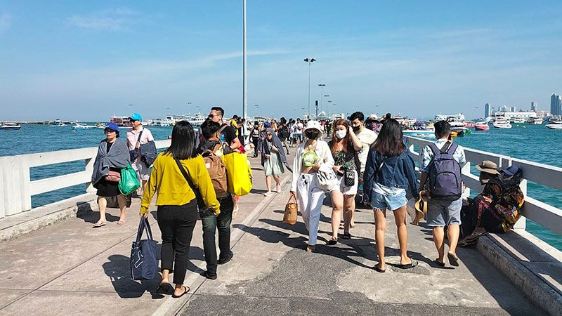 31 ธันวาคม 2565 เวลา 08.00 -12.00 น. ที่ท่าเรืออนุสรณ์สถานยุทธนาวีเกาะช้างต.แหลมงอบ อ.แหลมงอบ จ.ตราด นักท่องเที่ยวทั้งไทยและต่างประเทศกำลังลงเรือสปีดโบ๊ทของ 4 บริษัท ทั้งลีลาวดี , ปานัน , มารินเกาะหมาก เป็นต้น กว่า 200 คน เดินทางไปท่องเที่ยวที่ ต.เกาะหมาก อ.เกาะกูด ซึ่งจำนวนยังไม่มากนัก โดยแต่ละบริษัทจะมีวันละ 2 เที่ยวรวม 8 เที่ยว/วัน