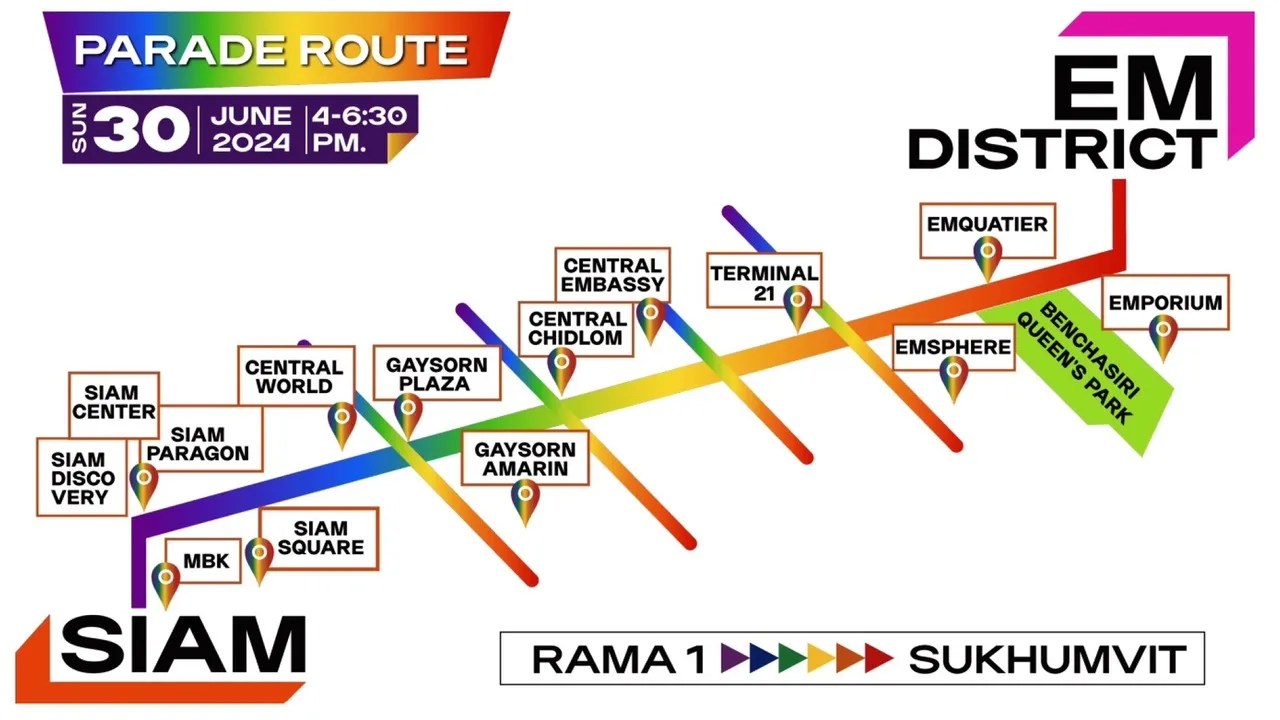 Love Pride Parade 2024 มาในแนวคิด Love Equality Peace ที่แสดงออกถึง ความรัก ความกลมเกลียว ความเท่าเทียม และความเสมอภาค ด้วยอีเวนต์การเดินขบวนพาเหรด ที่มีการตั้งขบวนพาเหรดยาวที่สุดในเอเชียด้วยระยะทาง 6 กิโลเมตร ตั้งแต่สนามกีฬาแห่งชาติ ศุภชลาศัย ไปจนถึงอุทยานเบญจสิริ ถนนสุขุมวิท