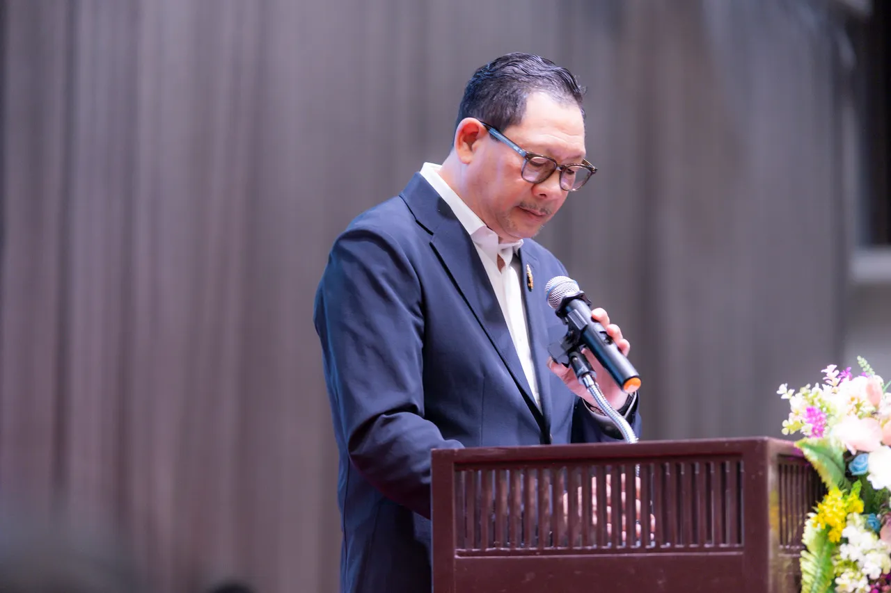 ศุภลักษณ์ อัมพุช รองประธานภาคีเครือข่ายภาคเอกชน กล่าวในงานแถลงข่าว Love Pride Parade 2024 ในฐานะผู้แทนภาคีภาคเอกชน