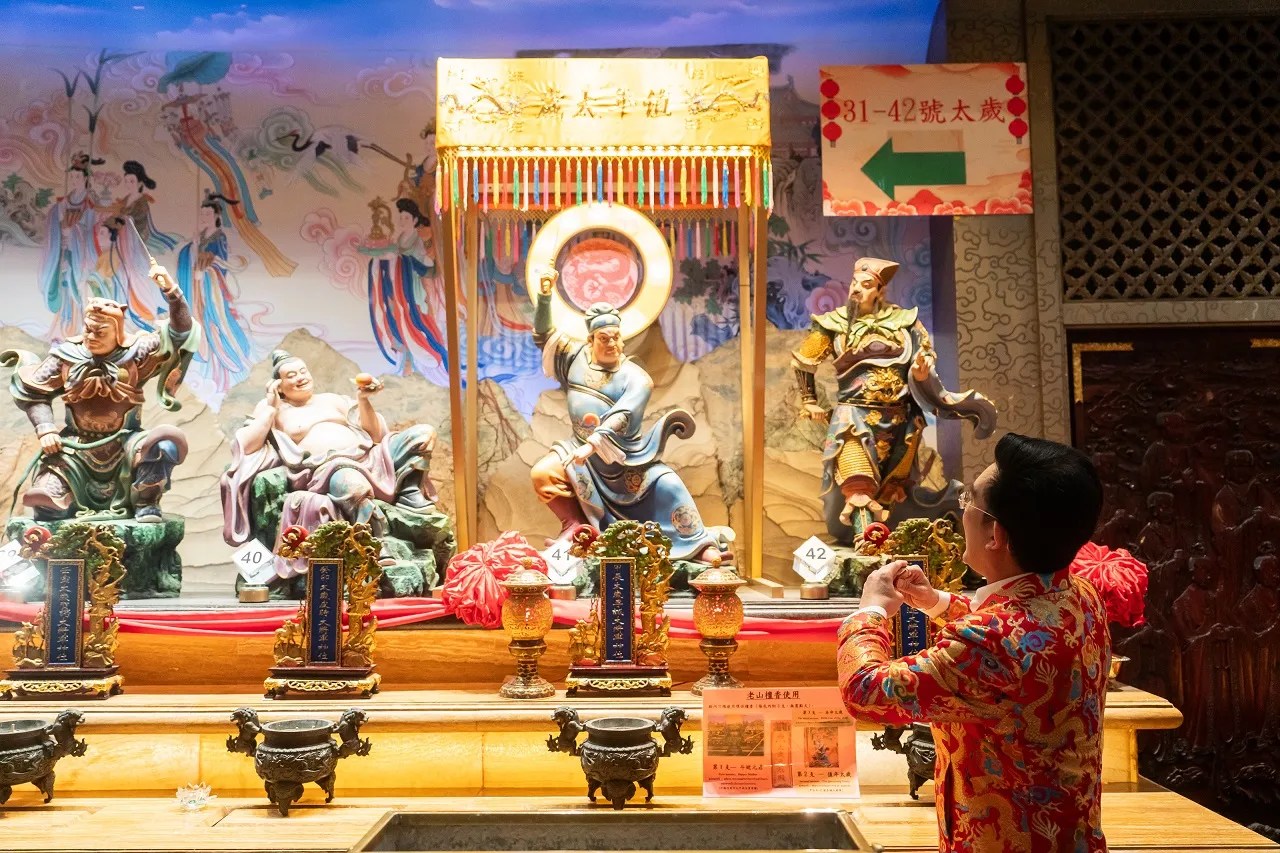 การเข้า Taisui Yuenchen Hall จะมีค่าบริการ 100 เหรียญดอลลาร์ฮ่องกง โดยจะได้รับธูปกำยาน 3 ดอก และยันต์มังกร แต่ถ้าเกิดในปีชงประจำปีนั้นๆ ก็จะสามารถเข้าได้โดยไม่ต้องเสียค่าบริการ และยังสามารถทำบุญบริจาค 300 เหรียญดอลลาร์ฮ่องกง เพื่อทำพิธีฝากดวง แก้ชงกับนักพรตด้านใน เมื่อเข้าไปจะพบกับบรรยากาศการตกแต่งอย่างยิ่งใหญ่งดงาม รายล้อมไปด้วยรูปปั้นของเทพเจ้าไท้ส่วยเอี๊ย ทั้ง 60 องค์ ตรงกลางคือรูปปั้นของพระแม่เต้าบ้อ ด้านบนเพดานจำลองท้องฟ้ายามค่ำคืนของฮ่องกงในฤดูใบไม้ผลิและใบไม้ร่วง
