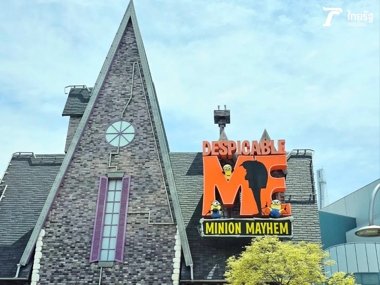 เมื่อเดินเข้าไปยังโซนเครื่องเล่น “Despicable Me: Minion Mayhem” ที่ตั้งอยู่ภายในบ้านของตัวละครมิสเตอร์กรู ก็จะพบกับเหล่าพนักงานที่เตรียมพาเราไปพบกับวายร้ายสีเหลืองจอมป่วน โดยทุกคนจะต้องเข้าสู่กระบวนการทดลองเปลี่ยนมนุษย์ให้กลายเป็นแก๊งมินเนียนตัวจิ๋ว ก่อนที่จะต้องเดินทางขึ้นยานพาหนะที่ทะยานขึ้น เพื่อจำลองสถานการณ์โดยรอบให้กลายเป็นภาพที่ฉายด้วยเทคนิค 4 มิติ